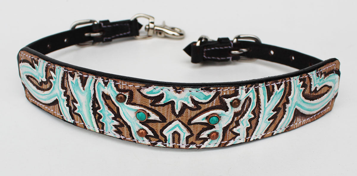 Western Heavy Duty Unisex Genuine Leather Floral Tooled Belt Teal Inlay 26JQ02