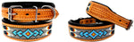 100% GENUINE RAWHIDE LEATHER HANDMADE DOG COLLAR, INCLUDES ANY CARVING, TOOLING, AND PAINTING. THIS HEAVY DUTY COLLAR FEATURES SMOOTH LEATHER PADDING FOR COMFORT AND STAINLESS STEEL HARDWARE. X-SMALL/SMALL COLLARS ARE 1" WIDE, MEDIUM/LARGE COLLARS ARE 1
