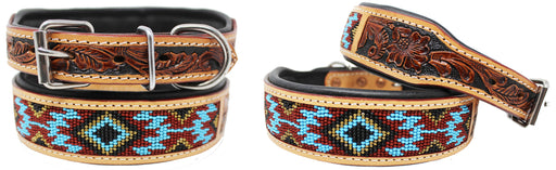 Hand Tooled Beaded Padded Leather Dog Collar 60129