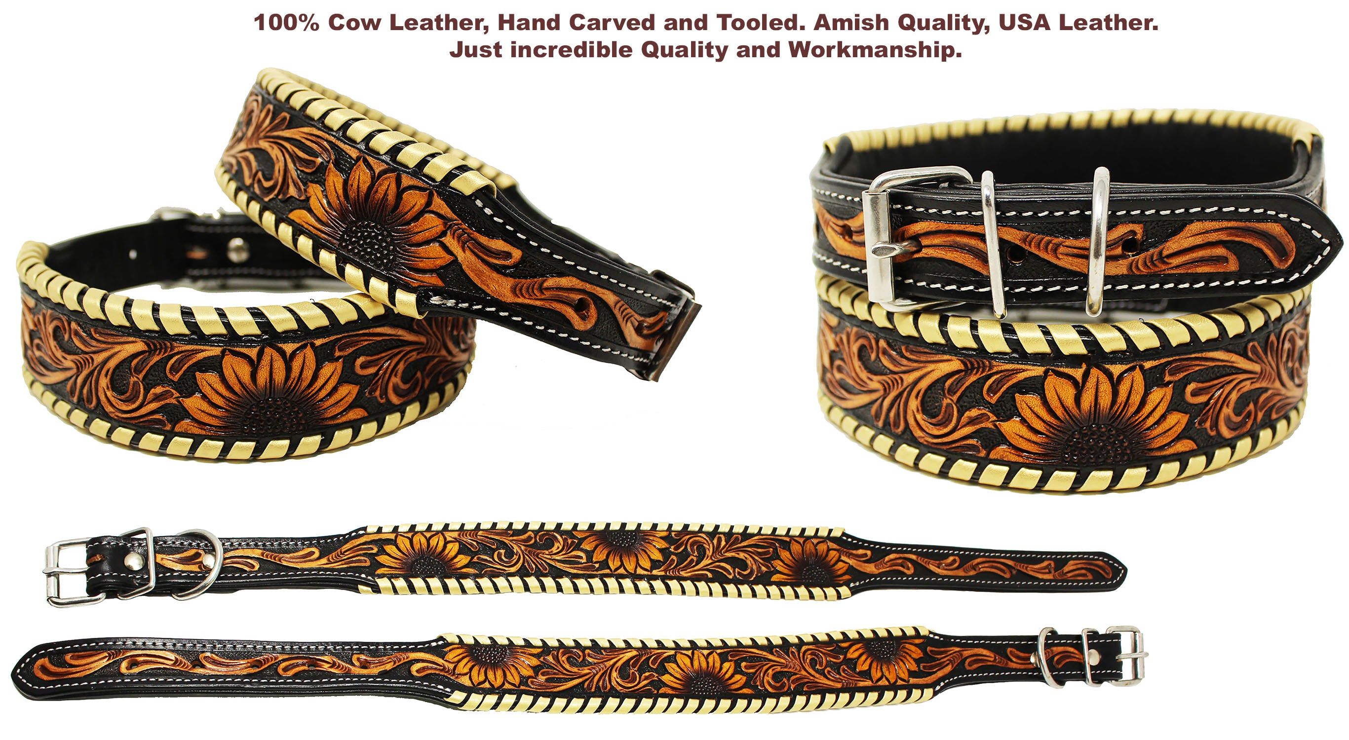 100% GENUINE RAWHIDE LEATHER HANDMADE DOG COLLAR, INCLUDES ANY CARVING, TOOLING, AND PAINTING. THIS HEAVY DUTY COLLAR FEATURES SMOOTH LEATHER PADDI...