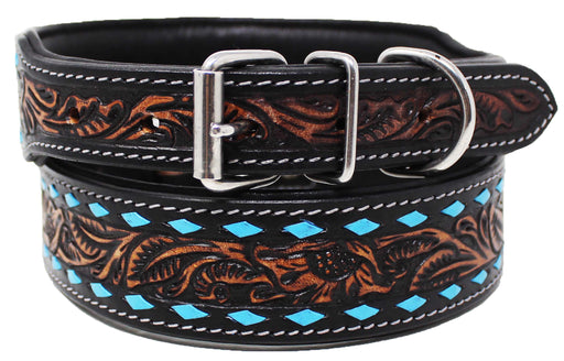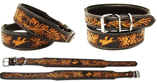 Challenger genuine handmade full grain leather heavy-duty dog collar comes fully padded for comfort. Collar is accented with a hand-tooled floral i...