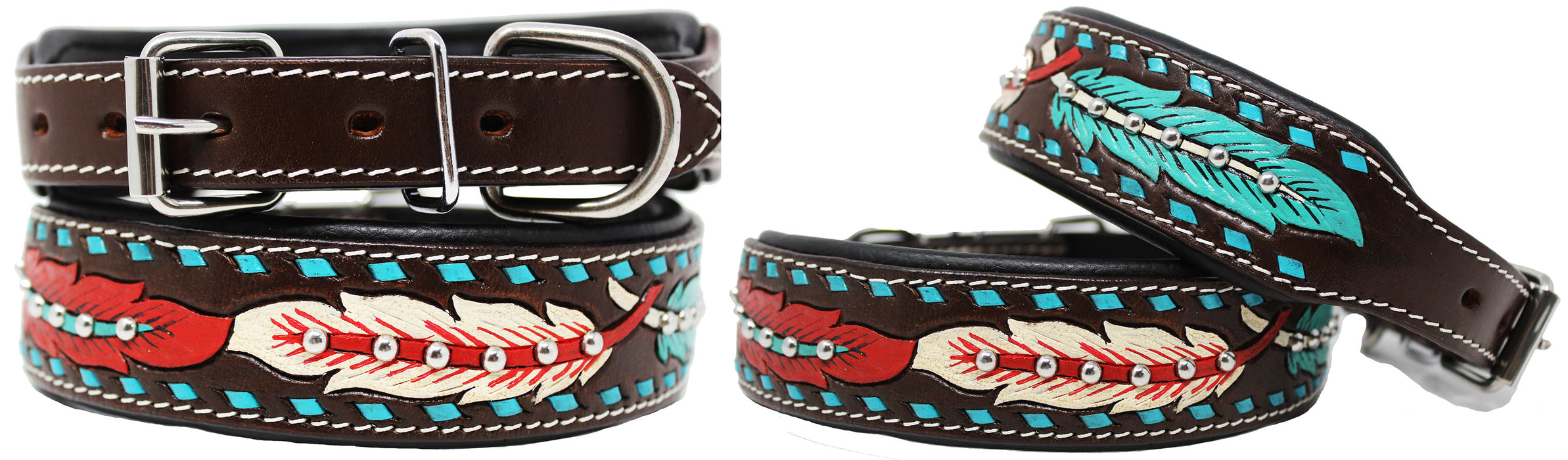 Dog Puppy Collar Genuine Cow Leather Padded Canine 6097