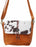Challenger women's western versatile handbag made from supple genuine full-grain leather to endure everyday use. Bag comes accented with a cowhide front, floral embossed leather, and a sunflower concho. Perfect choice for school, work, travel, or daily use. Conveniently sized roomy bag fits most airline overhead bins for a great carry-on option. Includes a removable adjustable shoulder strap. Full zipper closure main pocket comes fully lined with brown canvas. On the inside there is one side zippered pocket and two open compartments. Backside of bag also has one zippered pocket for additional storage. Cowhide is a natural product, each bag may vary slightly in shading, or color making each item a unique product.? Bag measures 12" L x 10" H providing plenty of room for all of your essentials.